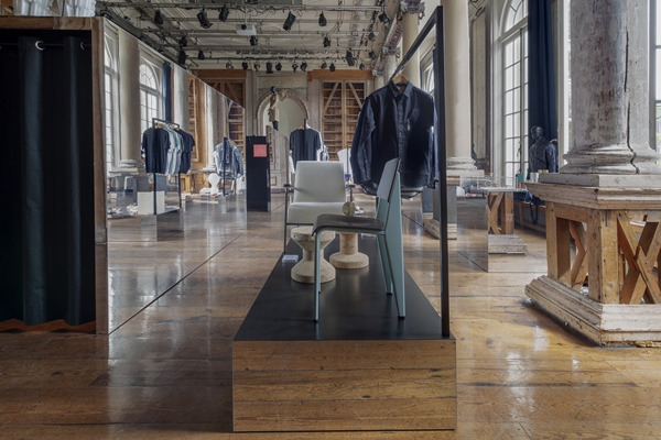 In de zaal staat een aantal spiegels opgesteld, die de bestaande ruimte en de geëtaleerde producten reflecteren. De spiegelende vlakken, voorzien van zwarte frames, bieden aldus een reflectie op tijd en geschiedenis, in de zin van oud versus nieuw. Daarnaast representeren ze Frame’s eigen reflecterende rol wat betreft architectuur, design en mode.