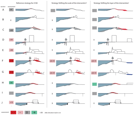 Met een integrale benadering ontstaat niet alleen meer inzicht over ruimtelijke consequentie, maar ook de potenties van een bepaalde gebied, denkt Nillesen. “Nu wordt een tekort in dijkhoogte allereerst gezien als probleem. Maar door op regionaal niveau in te grijpen, bijvoorbeeld door in een bepaald gebied ruimte voor de rivier te creëren, kan het ook een kans zijn, kom je tot een totaal andere ruimtelijke impact.”