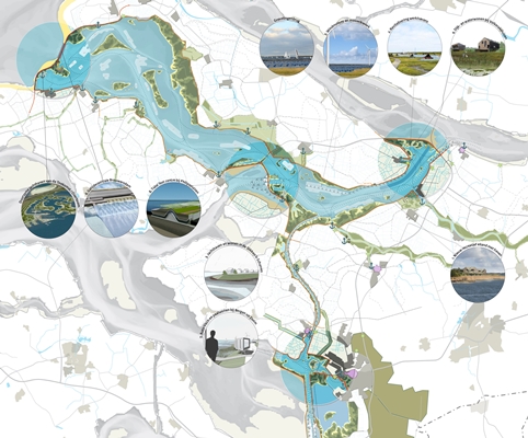 Copyright: Zuidwestelijke delta, Nederland. Schets gebiedsontwikkeling. Bosch Slabbers