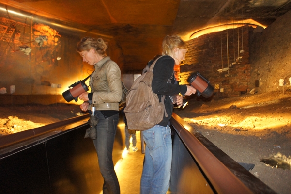 Wanneer de bezoeker met zijn zaklamp een fundament of archeologische vondst aanlicht, zet dat een toelichting van de stadsarcheoloog in gang, die hoorbaar is via een oortje. De verschillende hoogtes van het pad geven het publiek het gevoel af te dalen in de tijd.