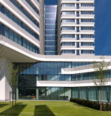 Het door archipelago ontworpen gebouw wordt omringd door groen, een conditie waarvan gebruik is gemaakt door veel uitzicht te creëren. Ook is op het maaiveld een colonnade gerealiseerd, die de overgang van binnen naar buiten verzacht.