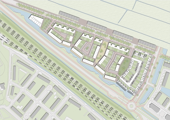 De randen van het plan hebben ieder hun eigen karakter. Het architectenbureau heeft woningtypen voor verschillende sferen ontworpen: waterwoningen, statige huizen, twee-onder-een-kapwoningen en een appartementengebouw in de scherpst punt van de driehoek.