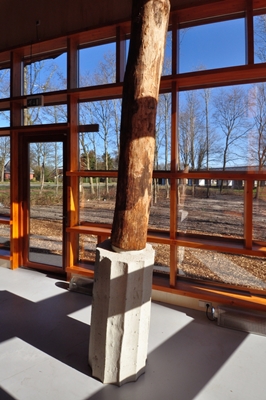 Het gehele complex is zo duurzaam mogelijk gerealiseerd, stelt het architectenbureau. Het toegepaste hout is lokaal en fsc-gecertificeerd – de boomstammen voor de constructie zijn bijvoorbeeld op de locatie gekapt ten behoeve van de nieuwbouw. Gras en sedum zorgen waar mogelijk voor absorbtie van regenwater.