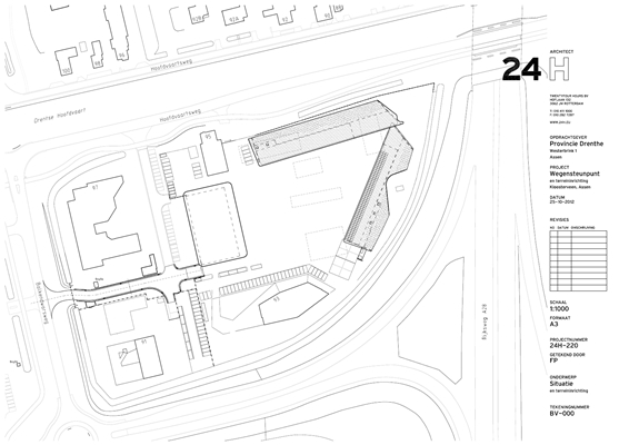 24H-architecture kreeg van Rijkswaterstaat en de provincie Drenthe de opdracht voor de herinrichting van het terrein aan de Balkendwarsweg, met een totaal oppervlak van 3.500 vierkante meter. Daarbij diende een aantal nieuwe gebouwen te worden gerealiseerd. Het nieuwe kantoor van Rijkswaterstaat – ook een ontwerp van 24H-architecture – en de oude boerderij die als kantoor dienst doet voor de provincie, moesten gehandhaafd blijven.
