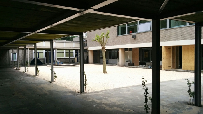 “De overbodige toegangssluizen naar de verdiepingen zijn gesloopt en geven hierdoor ook weer meer daglicht naar de centrale verkeersruimte. Aan de zuidzijde zijn op iedere verdieping een kamer doorgebroken om zo naast daglicht een connectie tussen de centrale verkeersruimte en de omgeving te krijgen.”