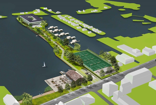 Daarnaast biedt het pand verschillende ruimtes voor bijvoorbeeld wijkactiviteiten en kleine zakelijke bijeenkomsten. Tevens komen er wat betreft het winnende team kleine daghoreca, een cocktailbar en een beeldentuin op de landtong in de plas.