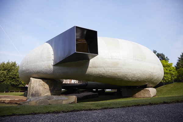 in Londen geopend. De Chileense architect Smiljan Radic heeft een hunebedachtige constructie ontworpen, met een doorschijnende witte schaal die rust op enkele rotsblokken.