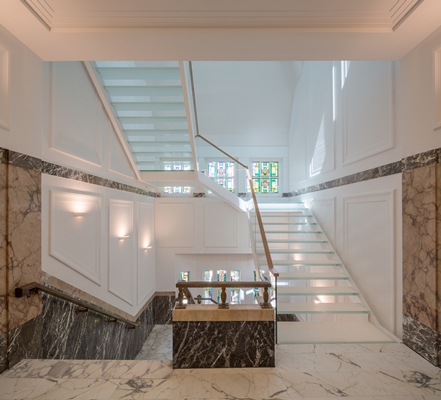 gerestaureerd. De oorspronkelijke decoratie, sculpturen en andere elementen die waren weggewerkt achter gipswanden en verlaagde plafonds, zijn in oude luister hersteld.