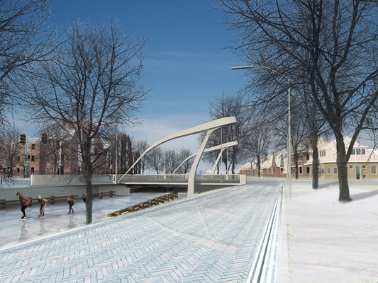 heeft de prijsvraag voor twee bruggen binnen de Blauwe As in Assen gewonnen. De beweegbare autobruggen worden aangelegd omdat Het Kanaal weer bevaarbaar wordt gemaakt. Het architectenbureau ontwierp twee bruggen met een ‘familieband’.