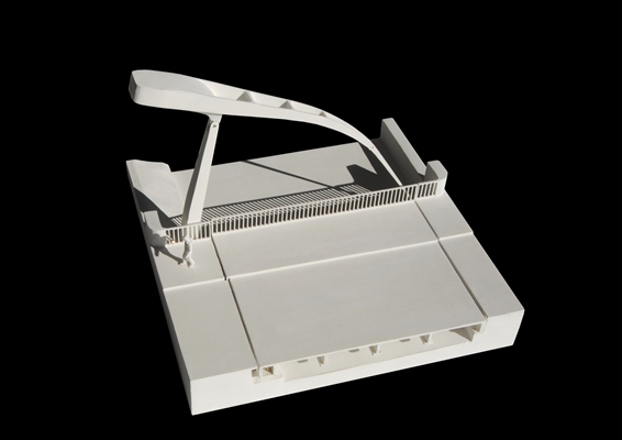 “Cruciaal in het ontwerpproces was dat bij de Groningerstraat de stedenbouwkundige maat tussen het kanaal en de parallelweg zo klein was dat een traditionele ophaalbrug niet tot de mogelijkheden behoorde. De uitzwaaiing van het contragewicht zou dwars door het vrij te houden wegprofiel lopen.”