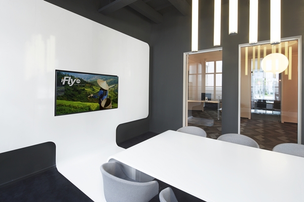 Elke etage heeft een andere sfeer door een ander interieur. Ook kleurstellingen spelen daarbij een rol; Mentjens heeft bovendien de kleuren bewust gekozen “als ondersteuning van de verschillende werkzaamheden en belevingsmomenten”. Zo is de creatieve brainstormruimte geschilderd in turquoise, dat communicatie en creativiteit zou bevorderen, en zijn concentratieplekken in geel uitgevoerd.