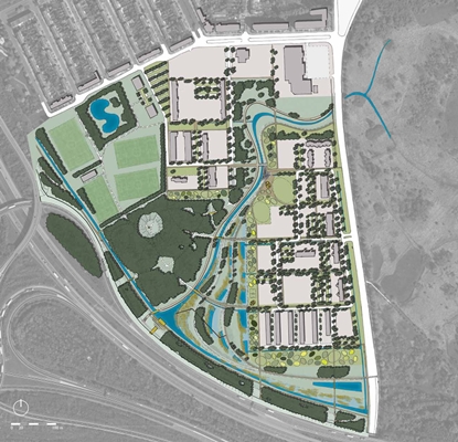 In de toekomstige situatie moet een omgeving ontstaan die ruimte biedt voor verblijf en ontmoeting, sport en spel en natuur en recreatie. In het masterplan voor het publieke domein vormt een gedempte beek die weer open wordt gemaakt de katalysator.