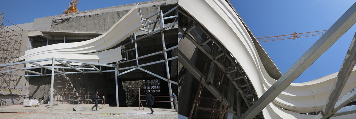 Een van die projecten die dagelijks feedback behoeft, is het Yinchuan Art Museum. Voor dit moderne kunstmuseum controleer ik constructietekeningen voor de gevel, die uit GRC-panelen, een atrium met een glazen dak en een aantal strips met enkel gekromd glas bestaat. Er worden zo’n 1500 panelen gefabriceerd van ongeveer vijftien vierkante meter tot maximaal dertig vierkante meter per paneel. Elk paneel is uniek en daardoor moeten de constructietekeningen van ieder paneel en de bijbehorende mal door de architect goedgekeurd worden. Geregeld reizen wij met de gevelconsultant af naar Yinchuan in centraal China voor een inspectie van het bouwproces.