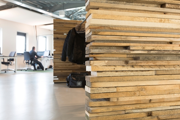 heeft voor AMP Logistics een betrekkelijk sobere, maar stoere kantoorinrichting gerealiseerd. De gebruikers konden letterlijk en figuurlijk onderdelen inbrengen.