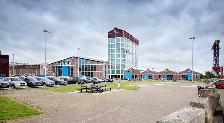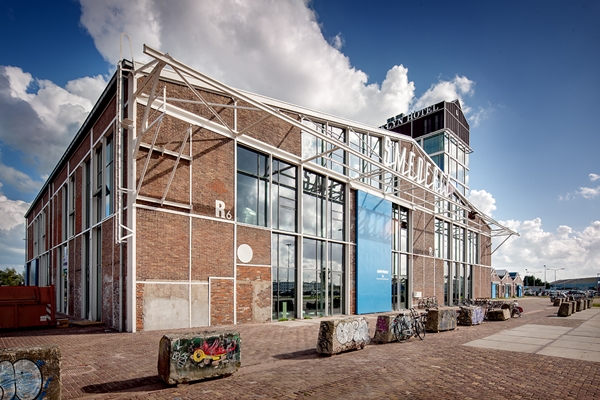 Het voormalige loodsencomplex van de Smederij op het NDSM-terrein in Amsterdam is getransformeerd tot een werkomgeving voor meerdere bedrijven. Het Rotterdamse architectenbureau