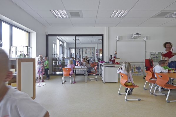 In de brede school zijn naast de drie basisscholen een kinderdagverblijf, een peuterspeelzaal, diverse welzijnsvoorzieningen en een gymzaal gehuisvest. Alle gebruikers hebben hun eigen identiteit en sfeer, maar tegelijkertijd nodigt het ontwerp uit tot ontmoeten en samenwerken, zegt BDG.