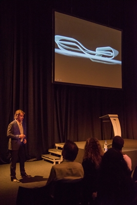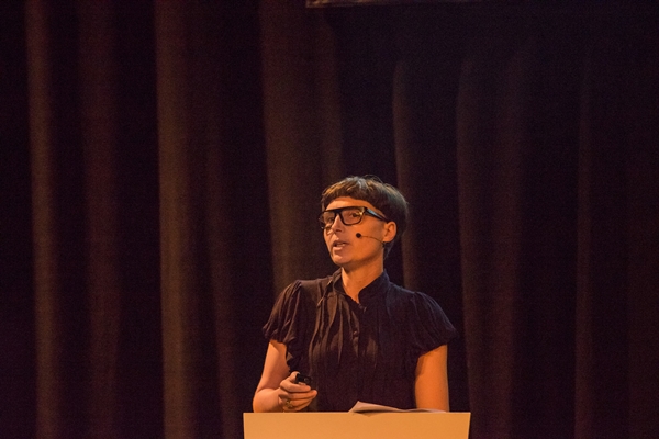 Designer Matali Crasset ging in haar lezing uitgebreid in op de hotels in Frankrijk en Tunesië waar zij bij betrokken is en waarvoor ze praktisch alles ontworpen heeft. Indrukwekkende gesamtkunstwerken. Maar ze vertelde ook over haar betrokkenheid bij 'Concrete by LCDA' – een bedrijf gespecialiseerd in lichtgewicht beton – waarvoor ze wanden heeft ontworpen, maar ook meubels en een lamp. In het ontwerp van die objecten heeft ze het 'beton-zijn' ervan benadrukt.