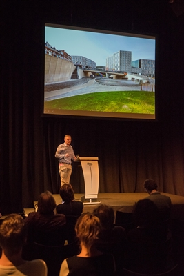 De grootste aandacht in het lezingenprogramma ging uit naar architect Anne Lacaton, van Lacaton & Vassal, die speciaal voor deze lezing uit Parijs was gekomen. Voor een bomvolle zaal vertelde ze vol vuur over haar benadering van het architectenvak. Door gebruik te maken van industrieel vervaardigde bouwproducten slaagt zij er bij ieder project weer in de opdrachtgever veel meer ruimte te bieden dan van tevoren bedacht. Een groot deel van deze extra ruimte is ongeklimatiseerd – een wintertuin – om deze betaalbaar te houden.