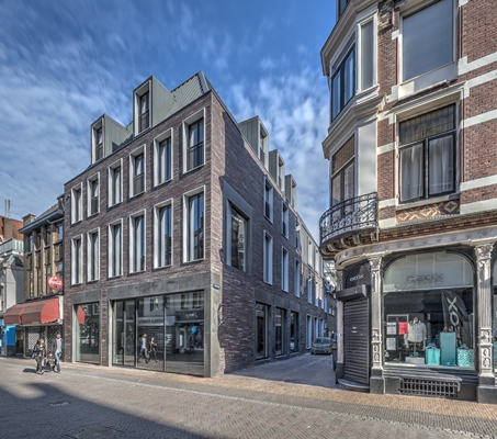 De gemeente stelde als voorwaarde voor sloop en nieuwbouw dat er een 'nieuw monument' zou worden teruggebouwd. Dreessen Willemse Architecten heeft in samenwerking met diederendirrix architecten nieuwbouw ontworpen voor een winkel en studentenwoningen, dat modern in detail en materialen is, maar een klassieke vormentaal kent.