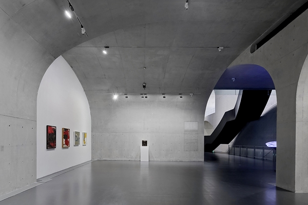 De bovenste laag van de ondergrondse parkeergarage is omgevormd tot tentoonstellingsruimten (de onderste vervult zijn bedoelde functie). De oorspronkelijke structuur van de parkeergarage vormt de basis voor de plaatsing van de 'paraplu's'.