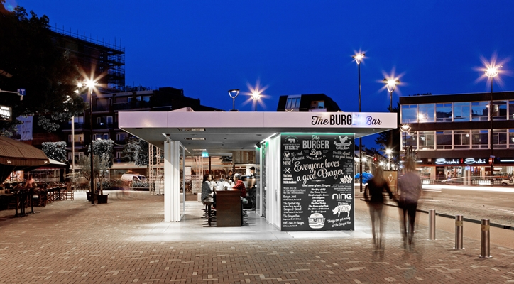 In gesloten toestand is de buitenbar als een bijzonder object in de stad aanwezig, zo geeft Grosfeld Van der Velde Architecten aan. Het paviljoen is sober gematerialiseerd in voornamelijk glas en staal. Daardoor wordt de buitenbar deel van het straatmeubilair in het centrum van Tilburg. Op dit moment is een hamburgerketen in de buitenbar gevestigd.