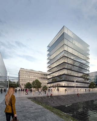 de prijsvraag voor het ontwerp van twee kantoorgebouwen in het Duitse Mainz gewonnen. Het ensemble Hafenspitze komt te staan in een voormalig havengebied dat wordt getransformeerd tot een woonwijk. De toren wordt het hoogste punt van de wijk.