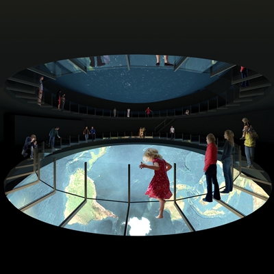 Columbus is een bolvormig gebouw dat voor de helft boven het maaiveld uitsteekt. In de onderste, ondergrondse helft bevindt zich het Earth Theatre. Hier kijken bezoekers vanaf twee ringvormige balkons met glazen vloeren op een holle megaprojectie met een doorsnede van zestien meter. In de bovenste helft van de bol, onder de koepel, bevindt zich een cirkelvormige auditorium. Hier komt het eerste National Geographic 3D-theater van Europa, waar onder andere documentaires en films worden vertoond.