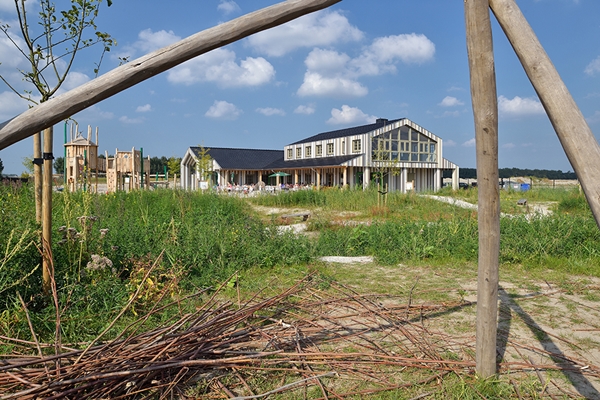 ontworpen gebouw ook over veel speelruimte voor kinderen. De gevel is deels geïnspireerd op een kindertekening van een huis.