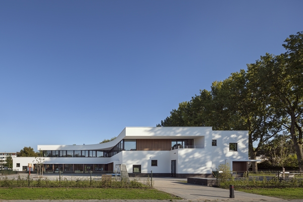 De nieuwe St. Michaëlschool in Rotterdam is ontworpen als een ‘villa in het groen’. Niet alleen refereert het gebouw met zijn wit gepleisterde gevel aan de vele villa’s in de wijk Hillegersberg, ook heeft architectenbureau