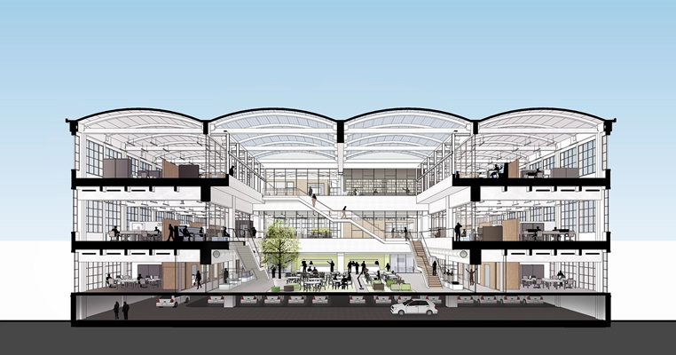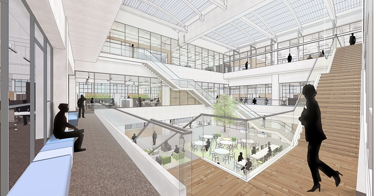 wordt het uit 1948 stammende industriële pand getransformeerd en heringericht. Het weer opengemaakte atrium gaat dienen als visuele en organisatorische hart.