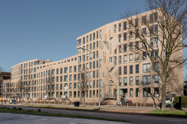 Het woongebouw is door Heren 5 architecten ontworpen met een opvallende gelede gevel en een gemetseld gevelkunstwerk van Boris Tellegen. Het nieuwbouwproject omvat 106 huur- en koopappartementen aan een semi-openbare binnentuin.