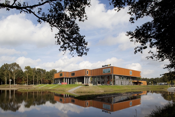 Het transparante gebouw met vurenhouten gevelbekleding ligt als een landhuis aan een waterrijke voortuin. Qua duurzaamheid scoort het gebouw een BREEAM Very Good-label. Naast een laag energieverbruik, slimme akoestische oplossingen, veel natuurlijk licht en goede bereikbaarheid draagt de expliciete aandacht voor sociale veiligheid hieraan bij.