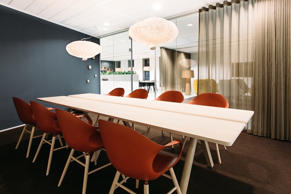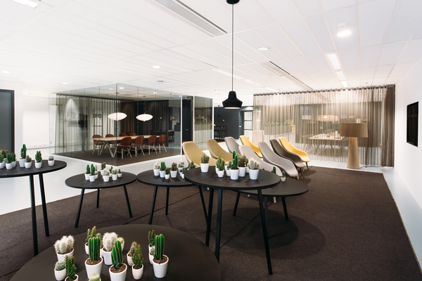 . De 'show-verdieping', die vorige maand is opgeleverd, moet potentiële huurders de kwaliteiten van de ruimten laten zien. Het interieur is open en fris, met natuurlijke elementen als de Organoid-wandpanelen van