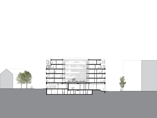 . In het gebouw komen appartementen, een supermarkt en een nieuwe entree van de CASA Showroom. De zestig appartementen zullen worden ontsloten via een ruime binnentuin.