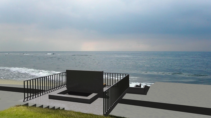 Het pomphuis van de gemalen krijgt een trechtervorm, die de doorvoer van het water door de dijk richting Waddenzee symboliseert. De zijwanden, die in het verlengde van het aanvoerkanaal staan, zijn dichte schijven van basalt.