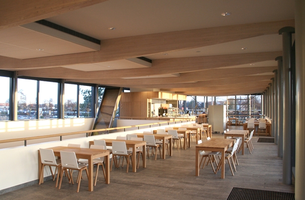 Vanuit het landschap opent zich het publieksgedeelte in de richting van het nieuwe stationsplein, dat deze zomer wordt aangelegd. Op de verdieping van het gebouw bevinden zich aan de ene kant de kantoren van het depot en aan de andere zijde een café-restaurant, met een terras dat grenst aan het nollenlandschap. Deze verdieping is rondom voorzien van glas. Daar overheen is een negentig meter lang, los dak geplaatst. Grote overstekken beschermen tegen de zon.