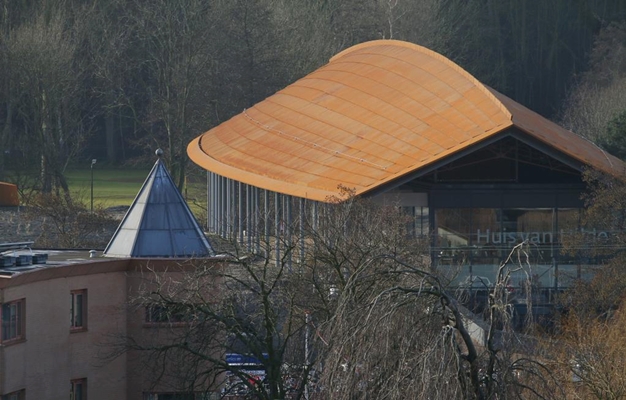 In beeld: sculpturale houten gevel Kliniek Arlesheim voltooid