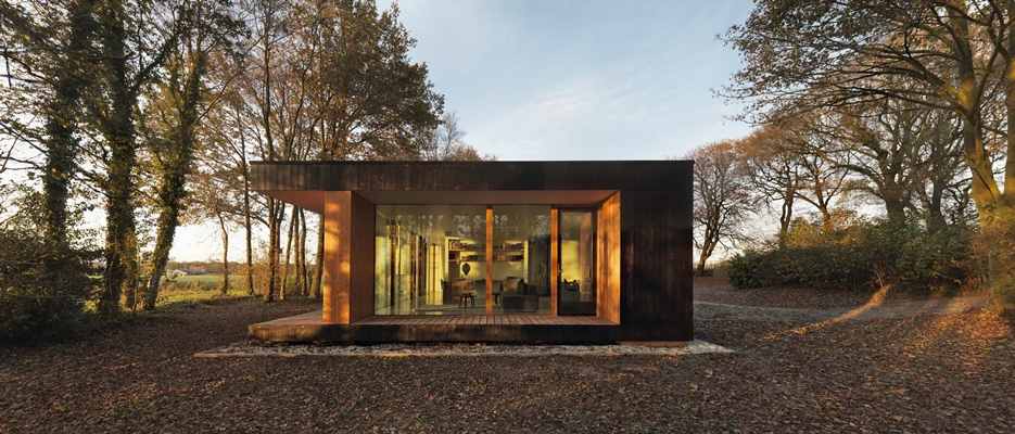 Om een energie-efficiënte woning te realiseren, is gebruik gemaakt van onder andere drievoudige beglazing, een zeer goed geïsoleerde gebouwschil en luchtdichte detaillering. Ook met de bekleding van de houten geveldelen, een combinatie van zwart en naturel larikshout, voegt het huis zich naar de natuurlijke omgeving. Het houten terras lijkt te ‘zweven’ boven het maaiveld.