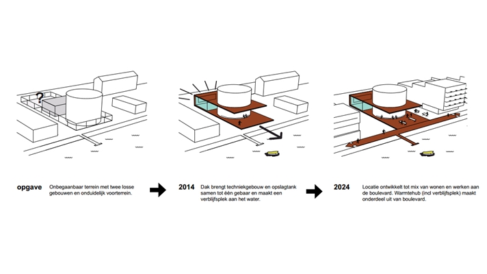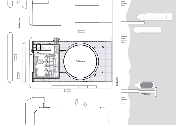 ontworpen installatiegebouw vormt een belangrijke schakel in het duurzame warmtenet van de stad. Daarnaast is er een verblijfsplek aan de Nieuwe Maas gecreëerd.