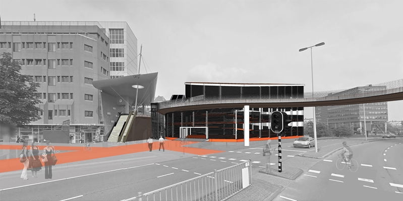 Deze stalling krijgt zowel een toegang op de overbouwing als aan het Stationsplein. Hiermee zal het stationsplein een nieuwe uitstraling krijgen vanaf de Houtveldweg.