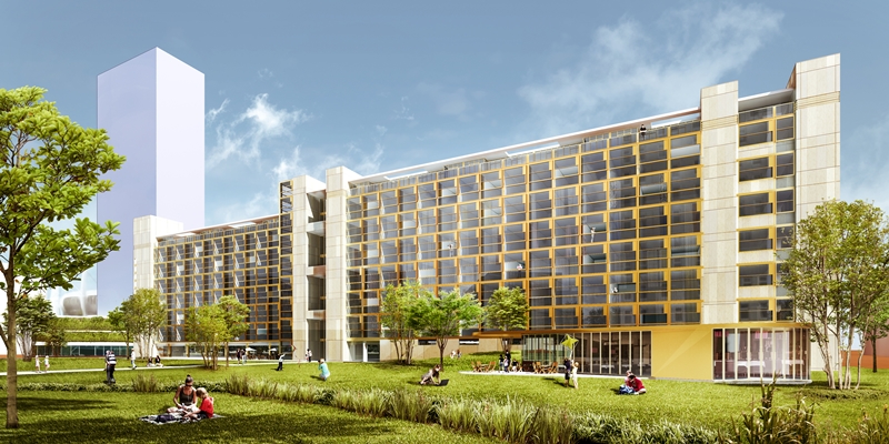 Het getransformeerde hoofdkantoor met park (visualisatie: DPI)