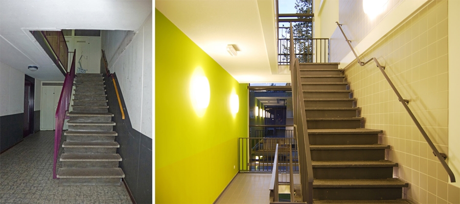 De overgebleven blokken zijn volledig gestript en binnen het casco opnieuw opgebouwd. Om de samenhang met de rest van de wijk te behouden, is de toegepaste baksteen in de blokken gereinigd en gehandhaafd. De gevels van de woningen zijn vervangen door geïsoleerde gevelelementen met rationele ritmiek passend bij de oorspronkelijke CIAM-ideologie.