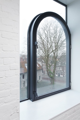 De nieuwe gevelopeningen zijn strak uit het metselwerk gezaagd en onderscheiden zich duidelijk van de oorspronkelijke gevelopeningen. Door in de gevelopeningen een verdiept liggend, getoogd raam op te nemen, wordt een verwijzing gemaakt met de bestaande ramen in de toren, meldt Zecc.