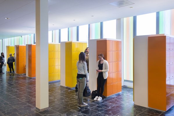 DJGA ontwierp de gevels en wanden in het schoolgebouw in verschillende kleuren om de identiteit van de verschillende gebouwdelen van de school te accentueren. Gerenoveerde gevels hebben hun oorspronkelijke wit- en grijstinten grotendeels behouden. De nieuwe gevels aan het ontmoetingsplein hebben elk een eigen kleurenpalet, dat in het achterliggende gebouwdeel terugkomt op de wanden van lokalen en op gangwanden en -deuren.