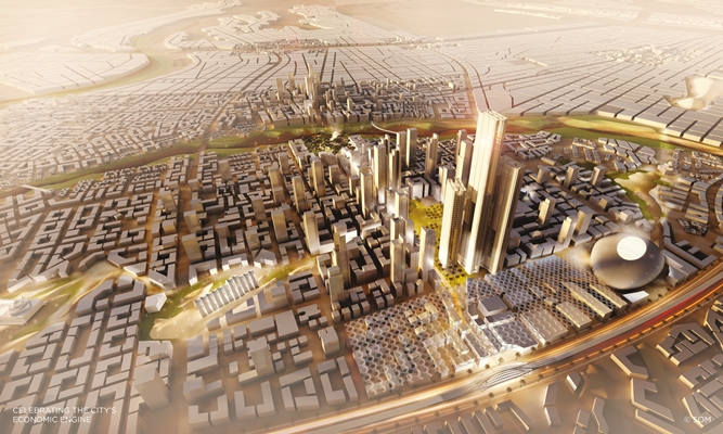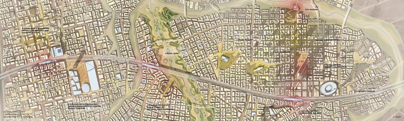 Voor de nieuwe bestuurlijke en financiële hoofdstad van Egypte heeft Skidmore, Owings & Merrill (SOM) het eerste raamwerk en de basisprincipes ontwikkeld. Het architectenbureau geeft aan met de visie tegemoet te willen komen aan de noden van een moderne, duurzame stad en een zich snel ontwikkelende economie.