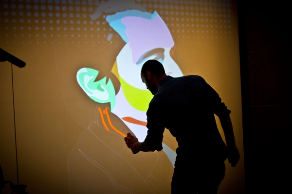 Copyright: Lichtkunstschilder Eelco van den Berg aan het werk. Phlips Lighting