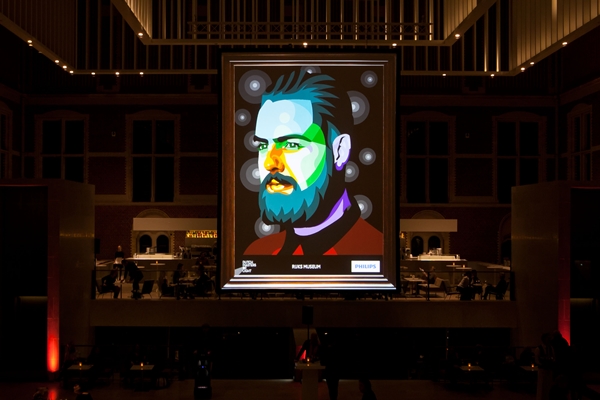 Philips schildert met licht: vandaag is de ‘Nacht Expositie’ onthuld in het Rijksmuseum. Met licht geschilderde portretten zijn te zien in het atrium.