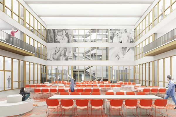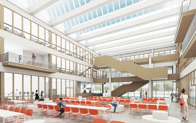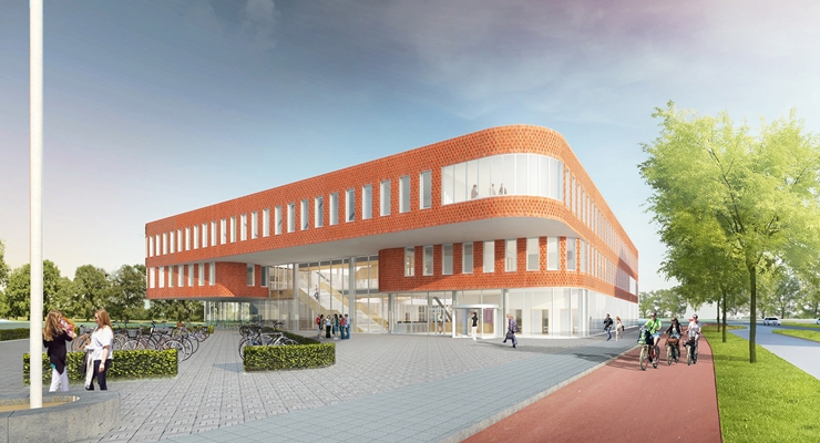 een nieuw onderwijsgebouw ontworpen. De gezamenlijke huisvesting in Purmerend oogt fors van buiten, maar binnen zal ze besloten voelen, zeggen de architecten.