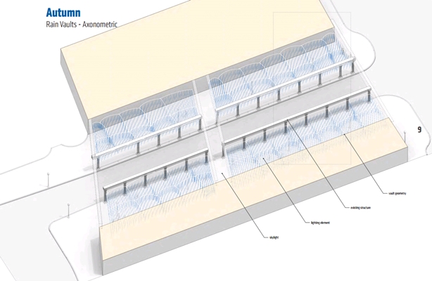 Volgens de winnend ontwerpers biedt hun inzending net als een goed stadspark ‘een moment van openheid, ruimte om te ademen en een plek waar gedachten kunnen wegdrijven’. Ze omschrijven het toekomstig interieur van de onderdoorgang in M Street als ‘een zachte regenbui met subtiel bewegend licht’ met een donker plafond dat verandert in een gloeiend vlak van licht.