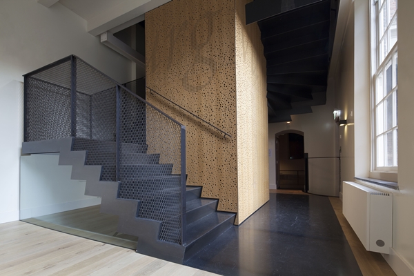 Zo hebben nieuwe elementen zoals het trappenhuis en het entreegebied aan het Hofplein een neutrale uitstraling en onderscheiden ze zich van de historische details door hun afwijkende materialisering. Om de verschillende ruimtes zoveel mogelijk in hun waarde te laten zijn de kwetsbaarste museumobjecten in geklimatiseerde vitrines geplaatst.